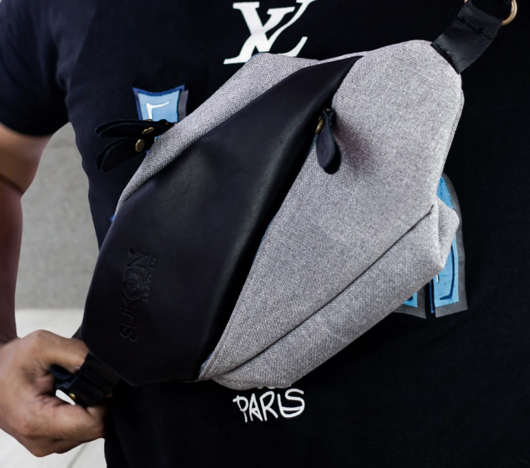 Sleek and timeless, this bag’s charcoal black waxed canvas is accented with striking caramel leather stripes and strap. This bag is a testament to a minimalist style that retains a sense of warmth and approachability.